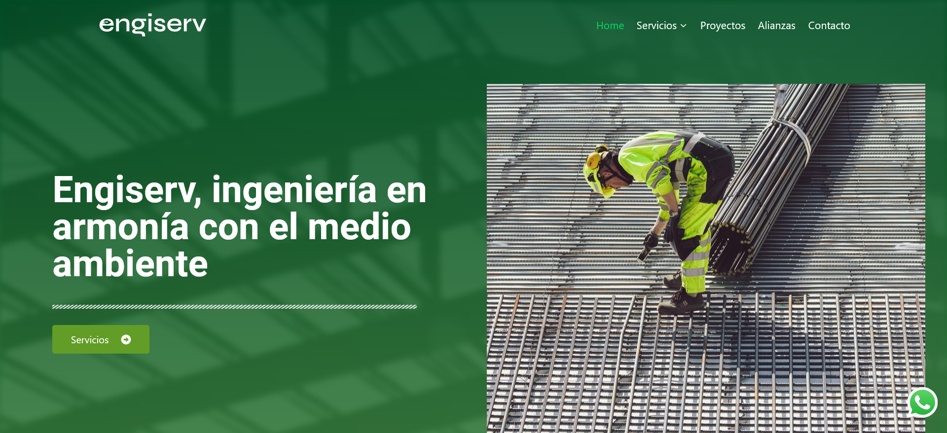 Website de empresa que presta servicios de ingenieria en el área de mecanica, construccion, planificación entre otros. En pro de preservación del medio ambiente
